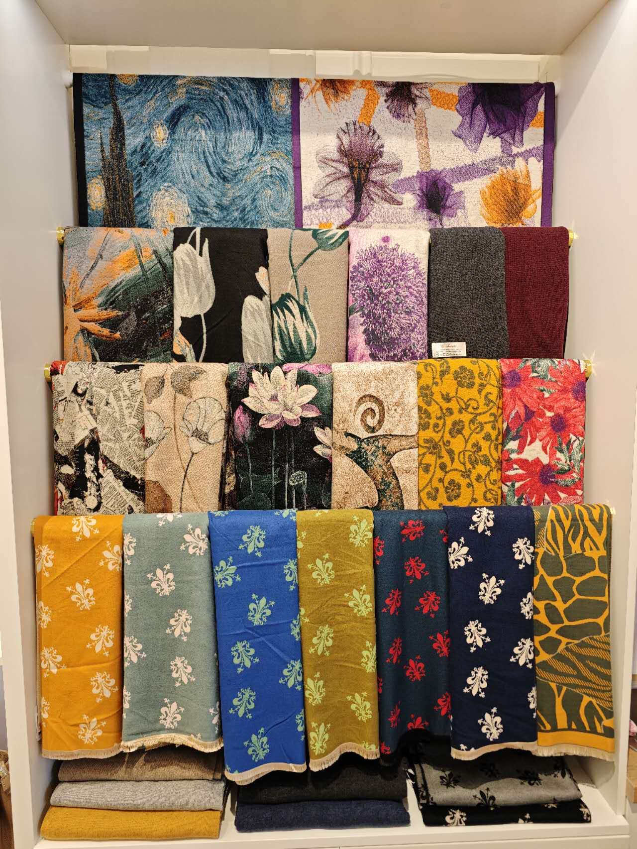 Discover the world of exquisite scarves crafted from premium materials such as linen, wool, and cashmere. Explore a wide range of colors and designs to suit your personal style.