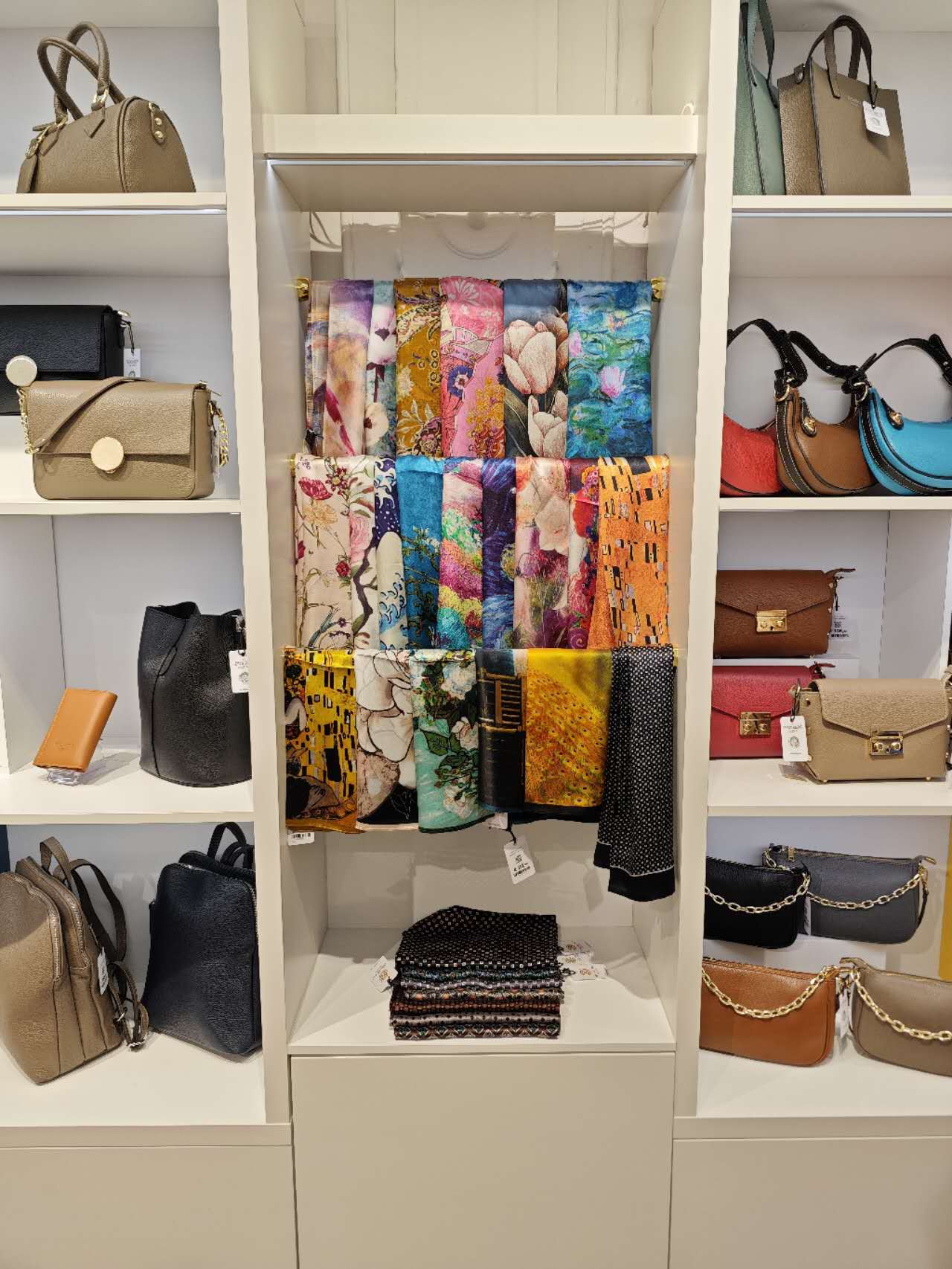 Elevate your style with a stunning collection of silk scarves in different sizes and colorways